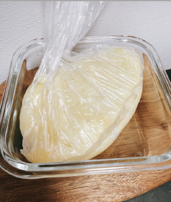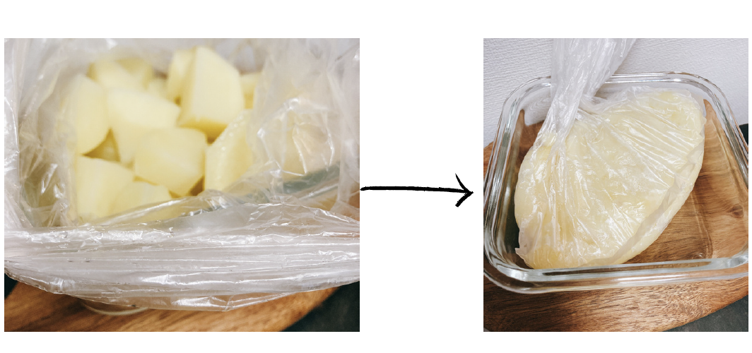 袋に入れたままレンチン、袋の上からモミモミたった1分でマッシュポテトの完成です。 他の具を投入すれば、ポテサラもあっという間にできちゃいます。 ![]()