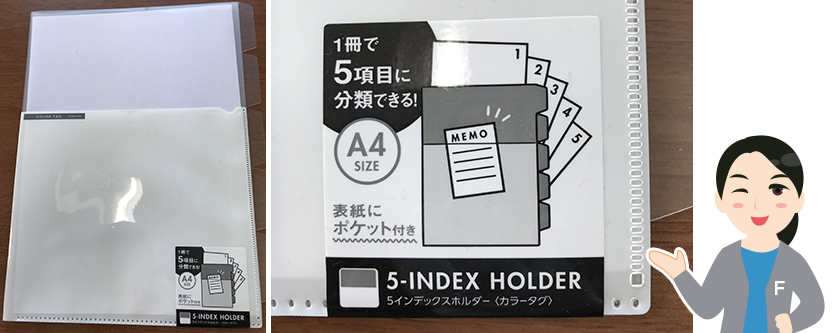 今回は、~コクヨ 5インデックスホルダーA4<カラータグ>透明~ を実際に使用してみました。 ![]() ![]()