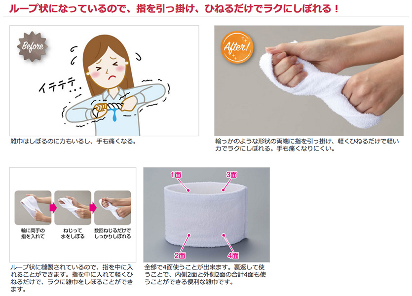 カウネット 軽い力でしぼれる雑巾10枚入り